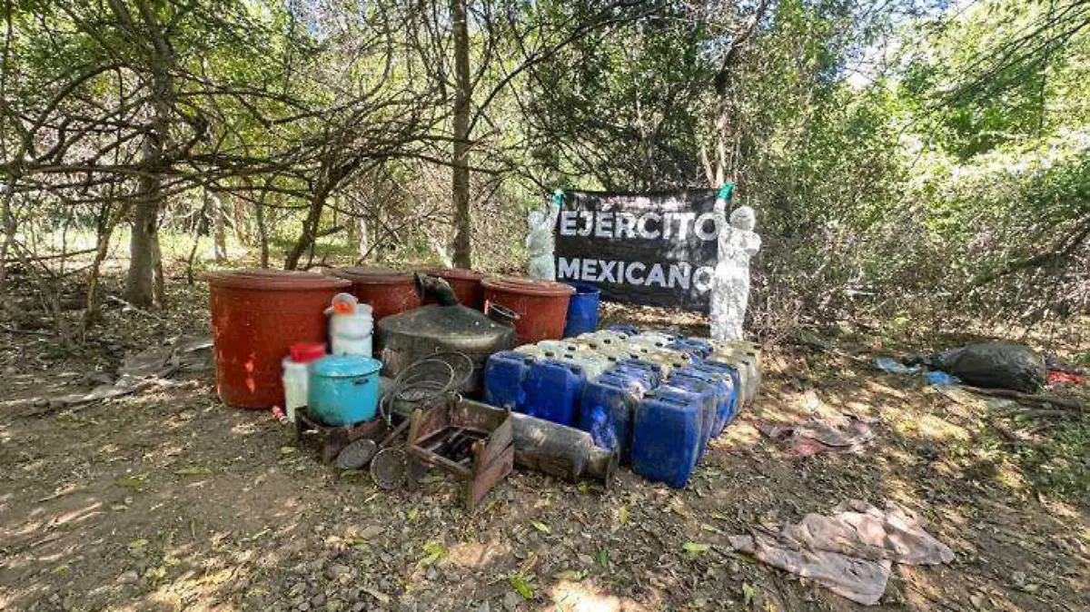 Estas acciones estuvo al frente los elementos del Ejército Mexicano, quienes localizaron e inhabilitaron un área de concentración de material diverso para la elaboración de metanfetamina.