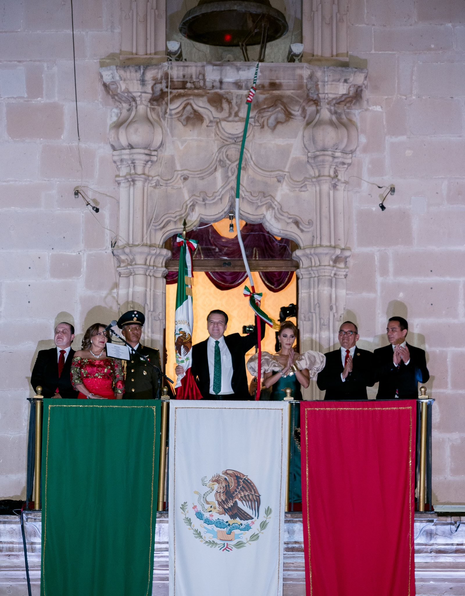 Con voz firme y llena de emoción, el gobernador tocó la campana y ondeó el lábaro nacional para lanzar las arengas que hicieron vibrar a los presentes: “¡Viva la Independencia, vivan los héroes que nos dieron patria y libertad, viva Hidalgo, viva Morelos, viva Doña Josefa Ortiz de Domínguez, viva Allende, viva Aldama, viva Vicente Guerrero, viva Guadalupe Victoria, viva Durango, viva México, viva México, viva México!”.