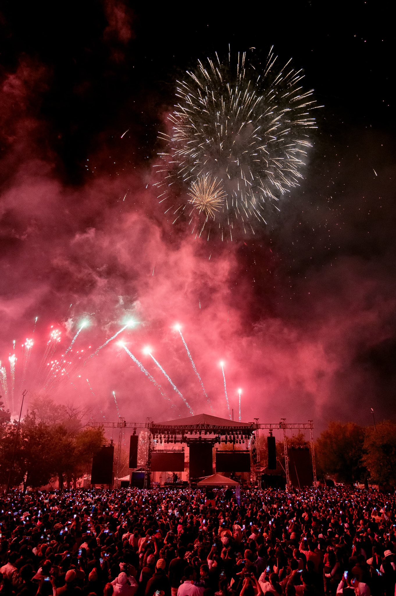 El clamor de los asistentes se unió al canto del Himno Nacional, mientras el cielo de la capital se iluminaba con un espectáculo de fuegos artificiales que llenó de color y emoción la celebración.